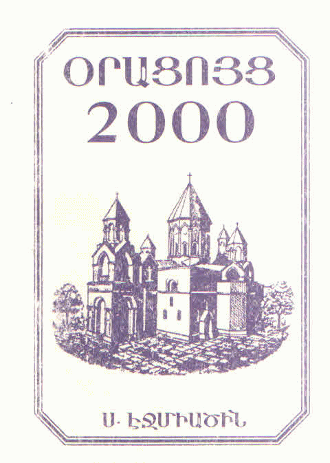 Օրացոյց 2000 նահանջ թուականին Քրիստոսի (ըստ նոր տոմարի) եւ բուն թուականին հայոց 4492-4493 եւ տոմարական թուականին հայոց ՌՆԽԹ-ՌՆԾ=1449-1450 / Կազմ.` Գ. արք․ Սէրայտարեան