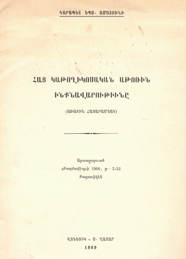 Հայ Կաթողիկոսական աթոռին ինքնավարութիւնը ։ (Առաջին հազարամեակ) / Կ․ եպս․ Ամատունի