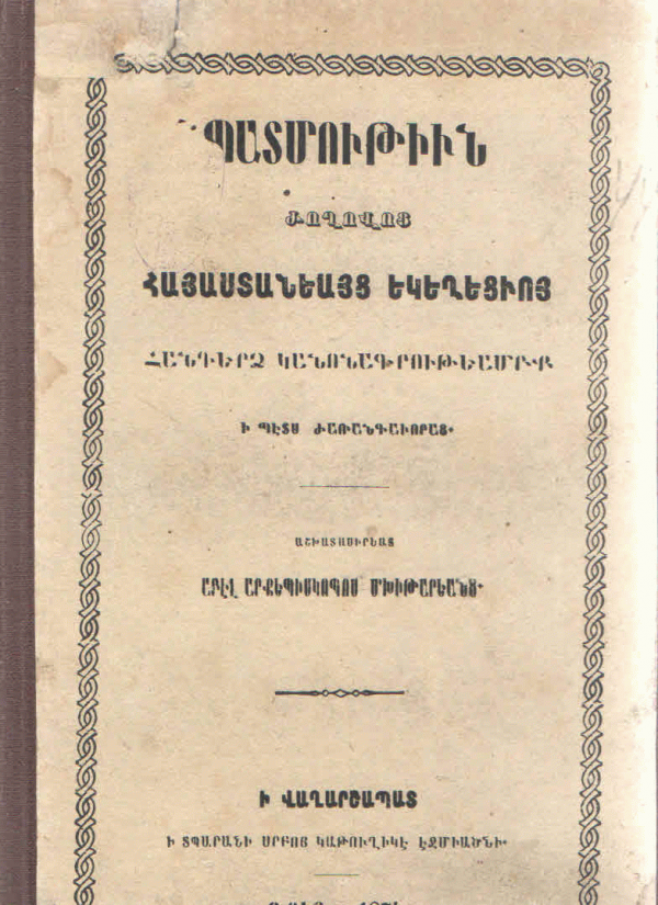 Պատմութիւն ժողովոց Հայաստանեայց եկեղեցւոյ հանդերձ կանոնագրութեամբք ի պէտս ժառանգաւորաց / Աշխատասիր.՝ Ա. Արք. Մխիթարեանց