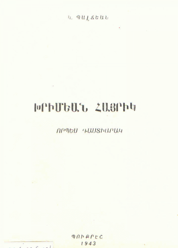 TextLanguage: Armenian Publication details: Պուքրէշ : Sarguinta, 1943.Description: 155 էջ ; 21 սմOther title: - [Խրիմյան Հայրիկ որպես դաստիարակ]