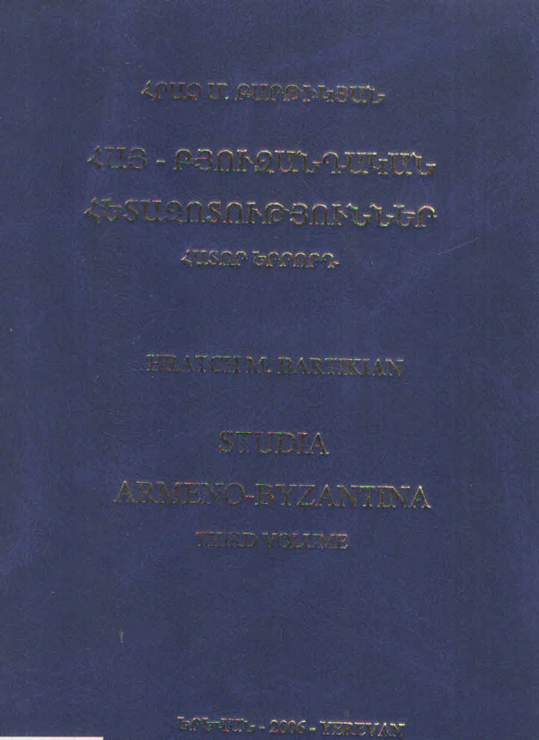 Հայ-Բյուզանդական հետազոտություններ / Հ. Բարթիկյան; Երևանի պետական համալսարան աստվածաբանության ֆակուլտետ; ՀՀ ԳԱԱ պատմության ինստիտուտ