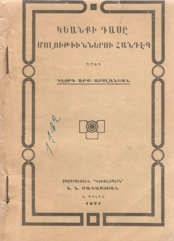 TextLanguage: Armenian Publication details: Կ.Պոլիս : տպ. «Կիւթէմպէրկ» Կ. Ն. Մագասճեան, 1927.Description: 109 էջ ; նկ.; 18 սմOther title: - [Կյանքի դասը մոլություններու հանդեպ]