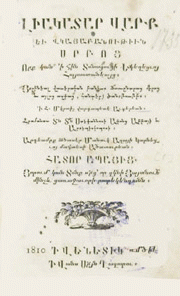 Հ. Ժ - Յօրինեալ վաւերական բանիւք ճառընտրաց մերոց և այլոց ազգաց, հանդերձ ծանօթութբք, 1814.-424 էջ ; վերջում 2 թերթ ներդիր պատկեր ;