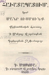 Հ. Ա. - Հաւատապատում կամ Մանր ուսմունք քրիստոնէական հաւատոյ, 1850.-ժ+3չհ.+77 էջ