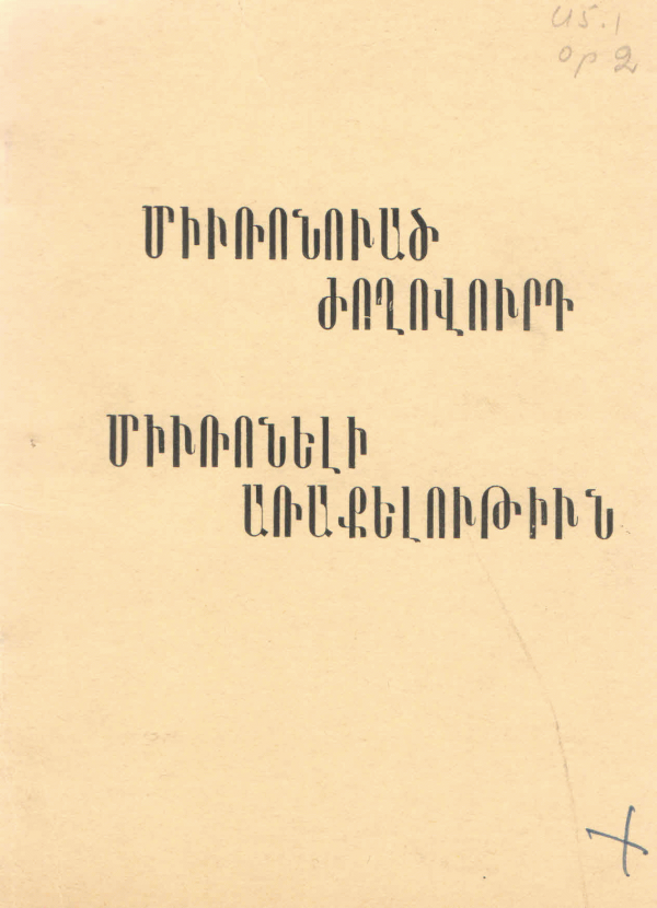 TextLanguage: Armenian Publication details: Անթիլիաս : ա. հ., 1972.Description: 20 էջ ; 16 սմOther title: - [Մյուռոնված ժողովուրդ, մյուռոնելի առաքելություն]