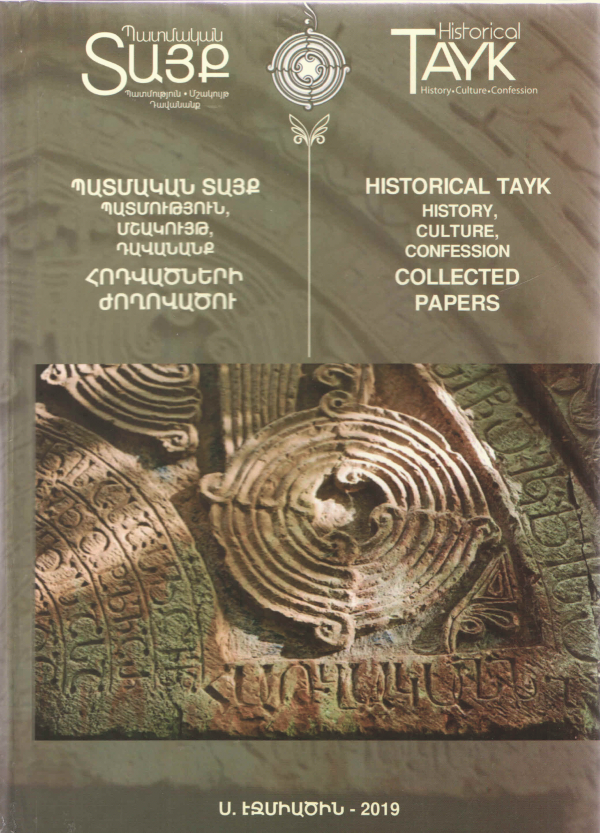 Պատմական Տայք. պատմություն, մշակույթ, դավանանք : Հոդվածների ժողովածու / = Historical Tayk : History, culture, confession. Collected papers / Պատ. խմբ.` Զ. Հակոբյան, Ն. Ղարիբյան, Ա. Ասրյան ; Մայր Աթոռ Սուրբ Էջմիածին ; Մեսրոպ Մաշտոցի անվան հին ձեռագրերի ինստիտուտ «Մատենադարան» ; Բյուզանդագիտության հայկական ազգային կոմիտե