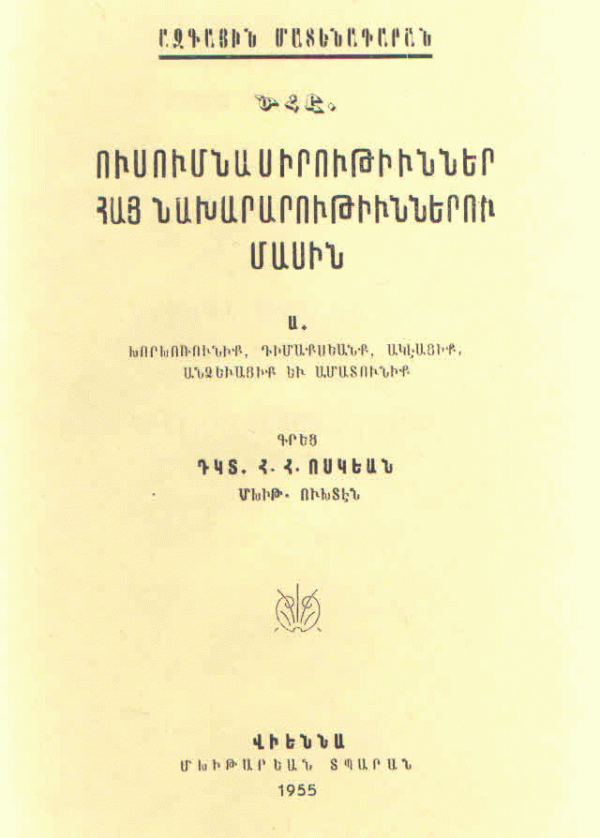 Հ. Ա - Խոռխոռունիք, Դիմաքսեանք, Ակէացիք, Անձեւացիք եւ Ամատունիք, 1955.- 120 էջ