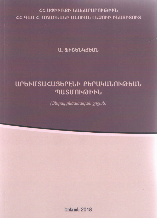 Արեւմտահայերէնի քերականութեան պատմութիւն: (Յետայտնեանական շրջան) / Ա. Ֆիշենկճեան; Խմբ.` Վ. Կատվալյան; ՀՀ Սփիււքի նախարարութիւն; ՀՀ ԳԱԱ Հ. Աճառեանի անվ. լեզուի ինստ.
