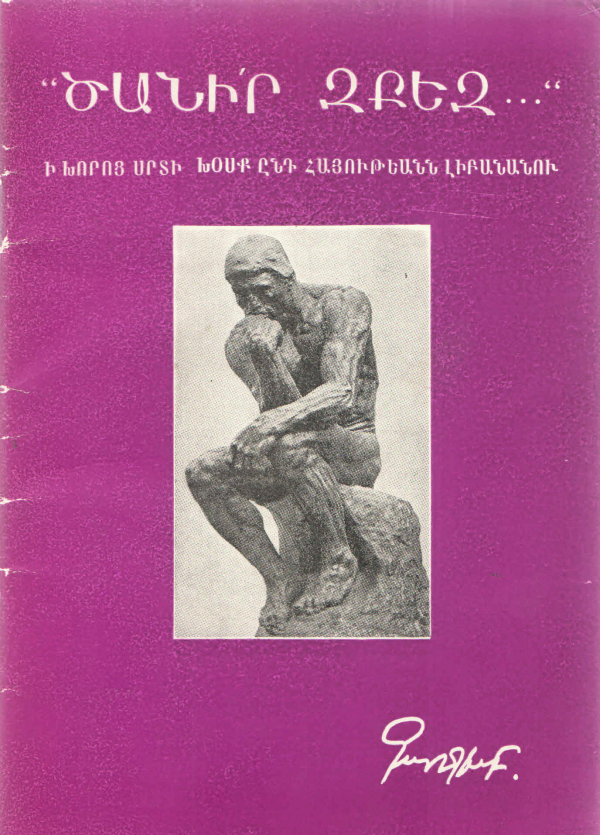 | 252/Գ-34 Հող, մարդ և գիր / | 252/Գ-34 Ան-ժամանակը ժամանակին մէջ / | 252/Գ-34 «Ծանիր զքեզ...» / | 252/Գ-34 «Ծանիր զքեզ...» / | 252/Գ-34 Ի խորոց սրտի խօսք ընդ ժողովրդեան / | 252/Գ-34 «Վասն հայրենեաց...» / | 252/Գ-34 Միւռոնուած ժողովուրդ, միւռոնելի առաքելութիւն / |