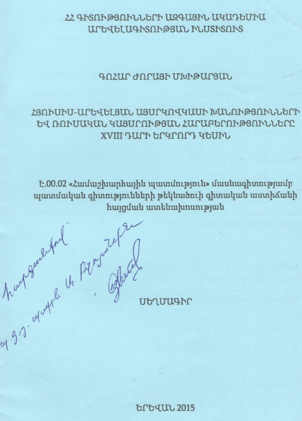 Մայր Աթոռ Սուրբ Էջմիածին «Վաչե և Թամար Մանուկյան» Մատենադարան | Գրապահոց | Սեղմագիր-181 (Browse shelf(Opens below)) | Available | Սպասարկվում է ընթերցասրահ | 34758 |