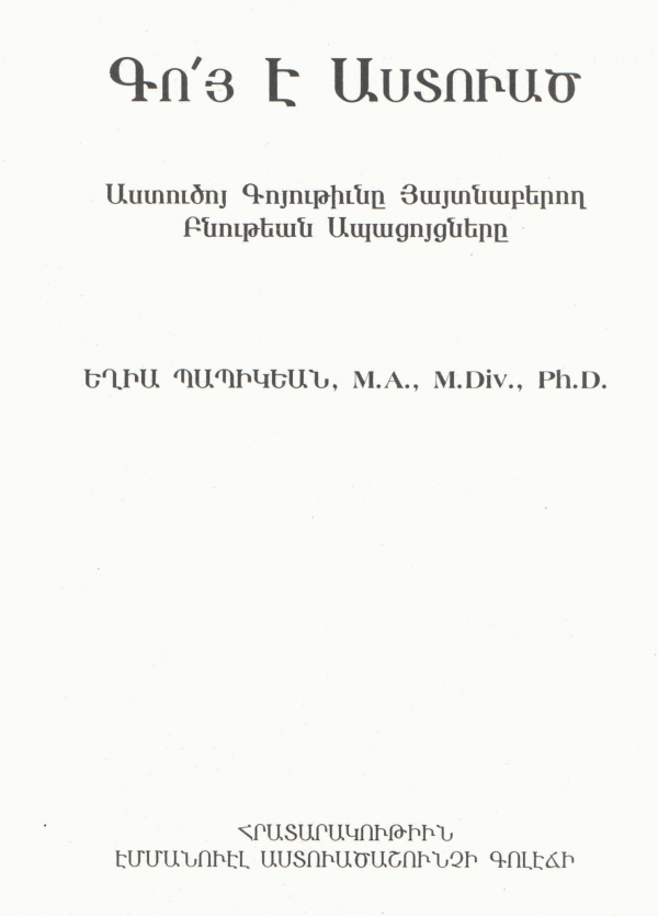 Գո՛յ է Աստուած ։ Աստուծոյ գոյութիւնը յայտնաբերող բնութեան ապացոյցները / Ե․ Պապիկեան