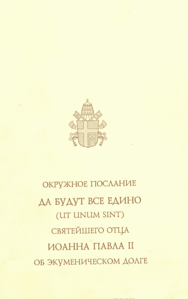 Окружное послание "Да будут все едино" (Ut unum sint) : Святейшего Отца Иоанна Павла II об экуменическом долге /