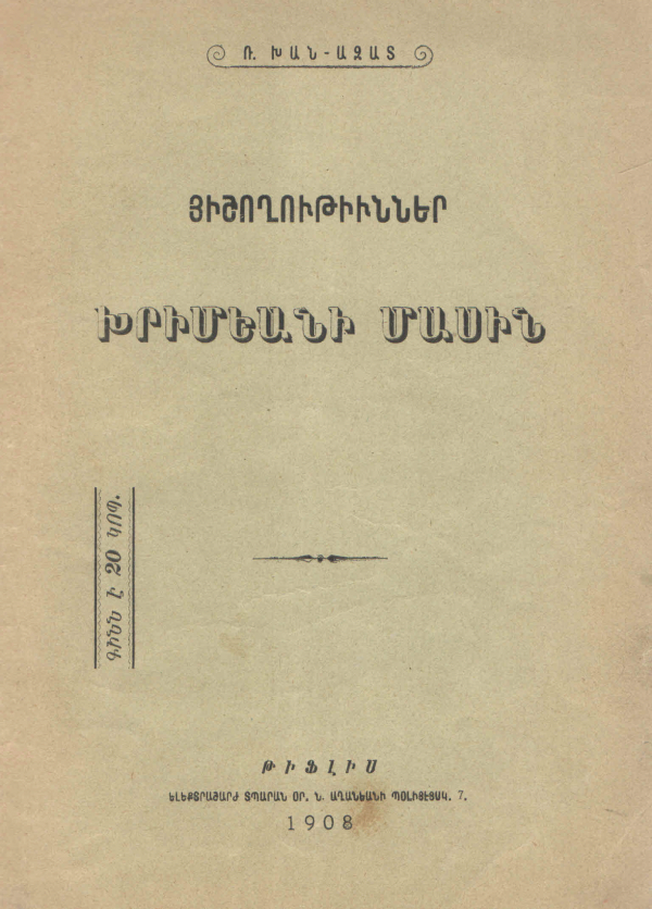 Յիշողութիւններ Խրիմեանի մասին / Ռ. Խան-Ազատ.