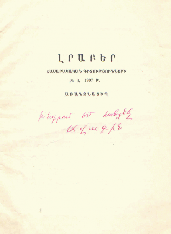 Մայր Աթոռ Սուրբ Էջմիածին «Վաչե և Թամար Մանուկյան» Մատենադարան | Գրապահոց | 947․925(045)/Լ-87 (Browse shelf(Opens below)) | Available | Սպասարկվում է ընթերցասրահ | Ավագ-347 |