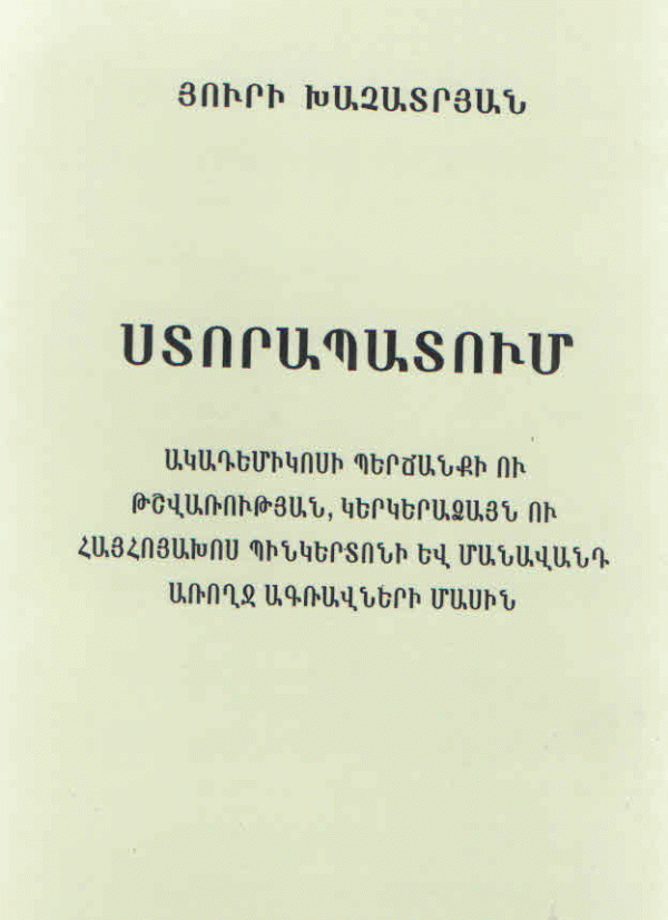 Ստորապատում ։ Ակադեմիկոսի պերճանքի ու թշվառության, կերկերաձայն ու հայհոյախոս Պինկերտոնի և մանավանդ առողջ ագռավների մասին / Յ․ Խաչատրյան