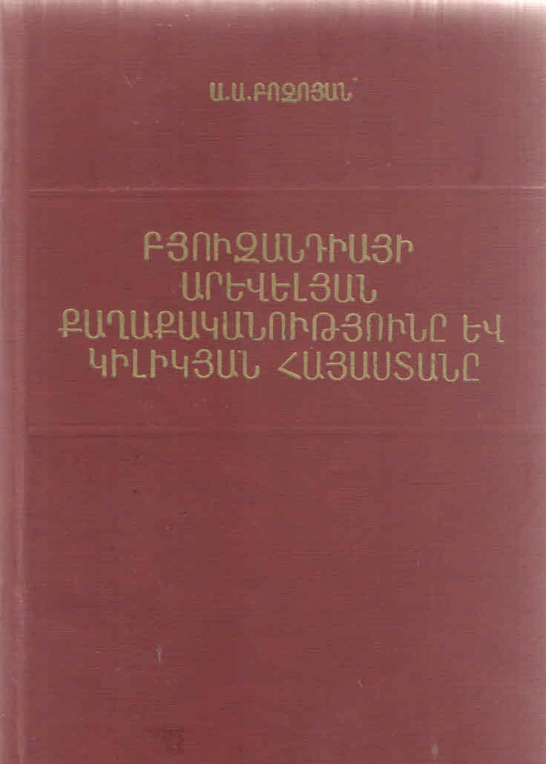 Բյուզանդիայի արևելյան քաղաքականությունը և Կիլիկյան Հայաստանը ԺԲ դարի 30-70-ական թվականներին / Ա․ Բոզոյան ; Պատ․ խմբ․՝ Պ․ Մ․ Մուրադյան ; Հայկական ՍՍՀ Գիտությունների ակադեմիա, Արևելագիտության ինստիտուտ