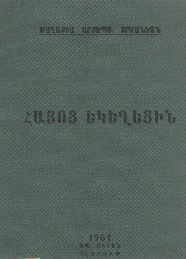 Հայոց եկեղեցին եւ իր պատմութիւնը, վարդապետութիւնը, վարչութիւնը, բարեկարգութիւնը, արարողութիւնը, գրականութիւնը ու ներկայ կացութիւնը / Մ․ արք․ Օրմանեան