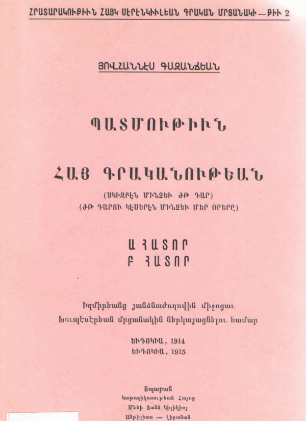 Իզմիրեանց յանձնաժողովին միջոցաւ Խուպէսէրեան մրցանակին ներկայանալու համար. Եւդոկիա 1914, 1915